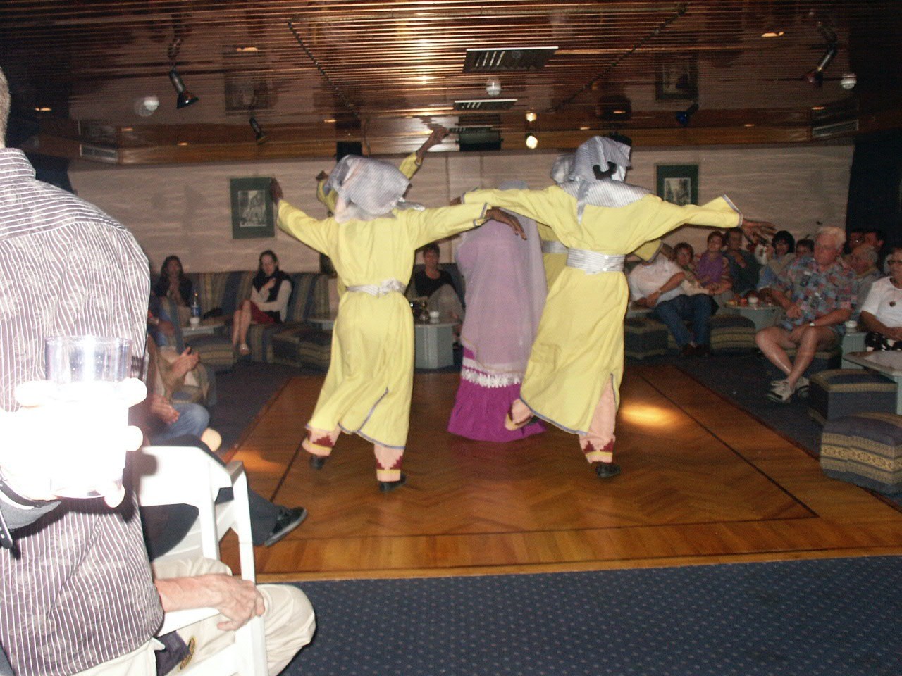 Day three and a very early rise for a flight out to Abu Simbel. By 10.30am we were back in Aswan. In the afternoon we took a Feluca ride across the river to Kitchener Island. The end of our day started off with a ‘Galabaya Night’ … As our Galabaya Night progresses, we sail back to Kom Ombo reaching there about 11.00pm. A newly wed Egyptian couple come on board to join the fun before we all go ashore to sample the delights of a Sheesha and Turkish Coffee.