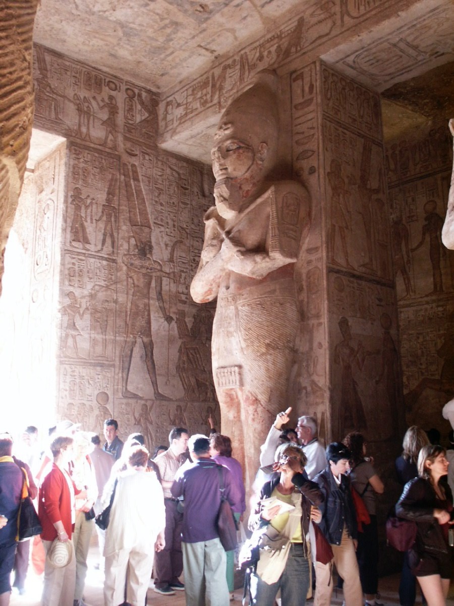 We go inside the Great Pyramid of Cheops and then head out into the desert a little way to look back at all three. After the Pyramids we stop at the Sphynx before heading South out of Cairo for Sakara and the stepped pyramid. It’s a short ride on to Memphis, Capital of Egypt for most of the Pharaonic period. Not as grand as previous sites we’ve visited, there is little but some huge carvings of Ramses II. In the evening we take in the delights of Giza Sound and Light.