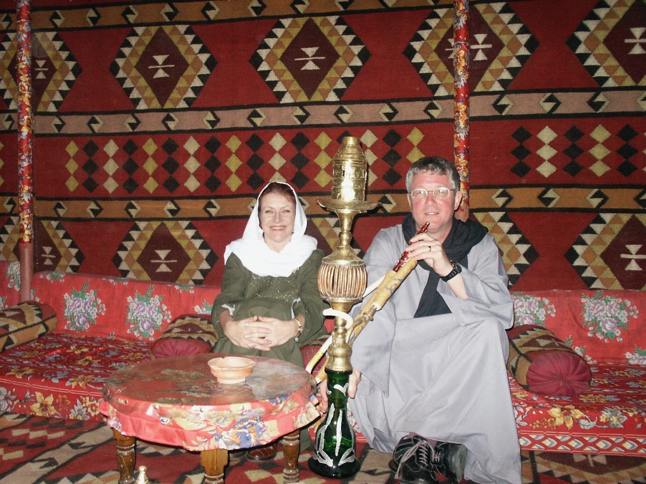 Day three and a very early rise for a flight out to Abu Simbel. By 10.30am we were back in Aswan. In the afternoon we took a Feluca ride across the river to Kitchener Island. The end of our day started off with a ‘Galabaya Night’ … As our Galabaya Night progresses, we sail back to Kom Ombo reaching there about 11.00pm. A newly wed Egyptian couple come on board to join the fun before we all go ashore to sample the delights of a Sheesha and Turkish Coffee.