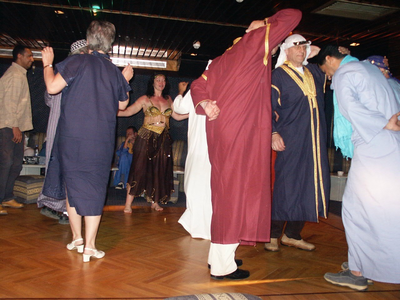 Day three and a very early rise for a flight out to Abu Simbel. By 10.30am we were back in Aswan. In the afternoon we took a Feluca ride across the river to Kitchener Island. The end of our day started off with a ‘Galabaya Night’ … As our Galabaya Night progresses, we sail back to Kom Ombo reaching there about 11.00pm. A newly wed Egyptian couple come on board to join the fun before we all go ashore to sample the delights of a Sheesha and Turkish Coffee.