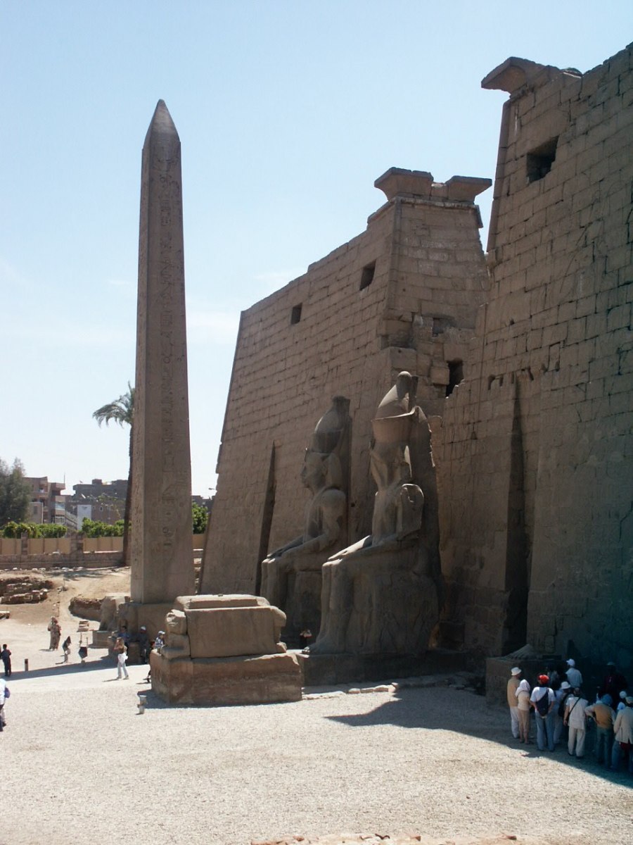 The pylon at Luxor Temple guarded by Ramses II