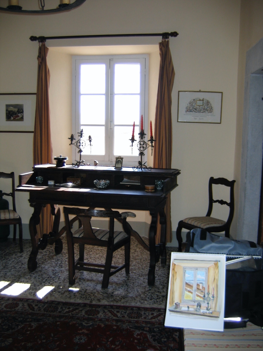 Our first week was spent at Casa Unicorno being well looked after by Kathryn and Dermot and guided in our painting efforts by Ivan. The small hamlet of Caugliano is perched on a hilltop with spectacular views of the surrounding hills. An enchanted garden and the sleepy surroundings provided a relaxed atmosphere were we could go at our own pace and take on as much or as little as we wanted.