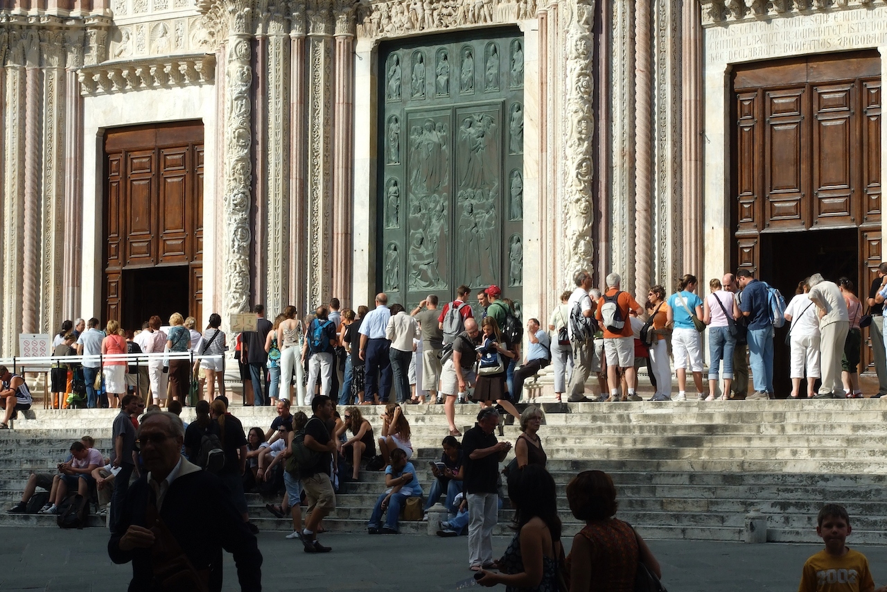 Another train journey, made easier through previous experiences. Our hotel is smack in the middle of the tourist area. Once again we dump the bags in our small hotel room and head out to explore. Much more crowded than Siena there are huge queues for all the exhibitions and museums, but we are happy just wandering and sketching.