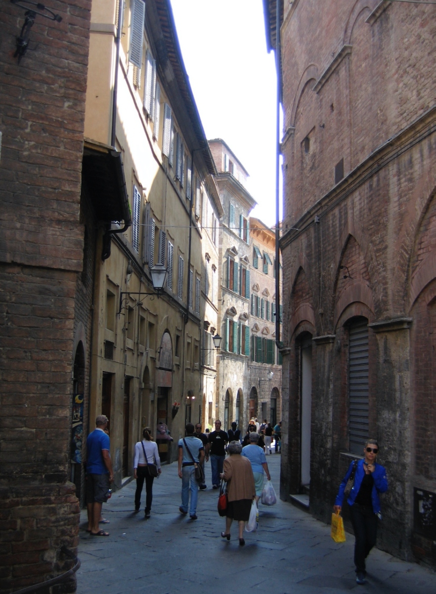 We arrived by train in Siena early afternoon. We dumped the bags in our hotel room and then set off to find what turned out to be a disappointing lunch, but it was the only meal that was so. Though crowded and busy Siena was charming. We found a few haunts to sit, sip cappuccinos and draw and paint to our hearts content.