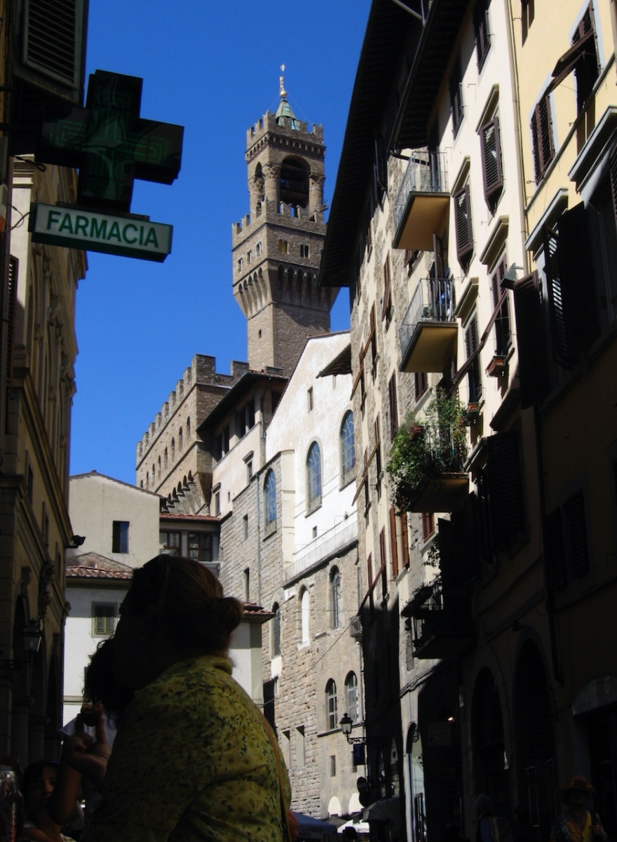 Another train journey, made easier through previous experiences. Our hotel is smack in the middle of the tourist area. Once again we dump the bags in our small hotel room and head out to explore. Much more crowded than Siena there are huge queues for all the exhibitions and museums, but we are happy just wandering and sketching.