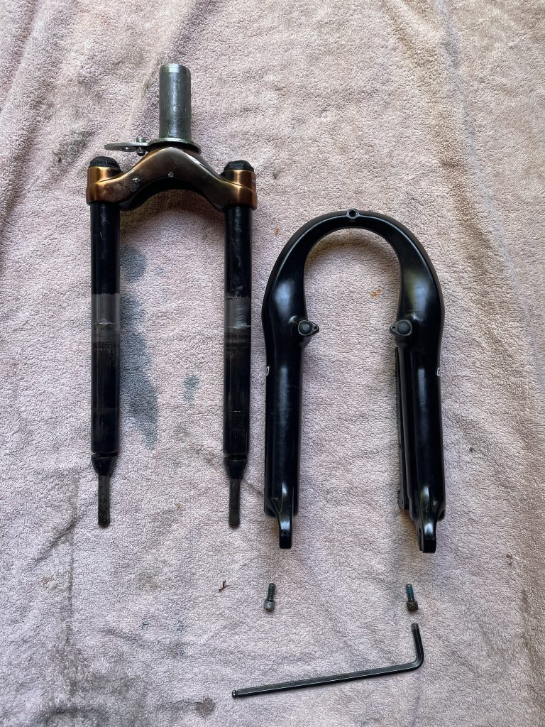 The original forks on our 2011 Pino are Spinner Grind forks. After a decade of riding, the fork was showing signs of a desperate need for replacement or at least a service.