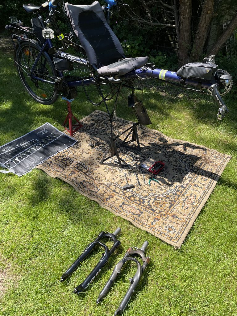As I have two sets of forks, the rejuvenated set can be kept in the bike shed, ready for the next change-over in a couple of years.