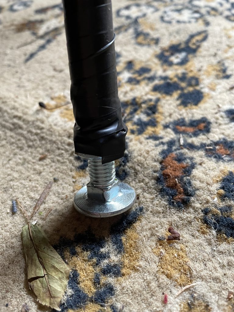 Because the 300 is about 2cm longer than the Grind, if your Pino has the Hase stand fitted, it may not have enough length to support the bike properly when up on the stand, so the legs need to be lengthened. I did this by using a couple of M12 bolts inserted into the tube of the leg and held in place with some ‘No nails’ glue. A nut placed on the bolt prevents the bolt from overpowering the glue and sliding into the leg tube.
