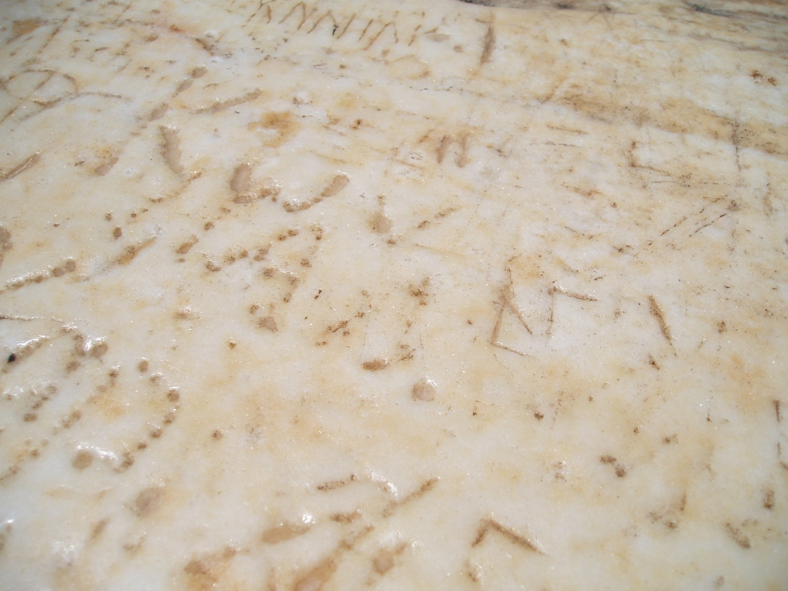 The stone wall at the top was polished by a thousand hands... and graffitied by them too!