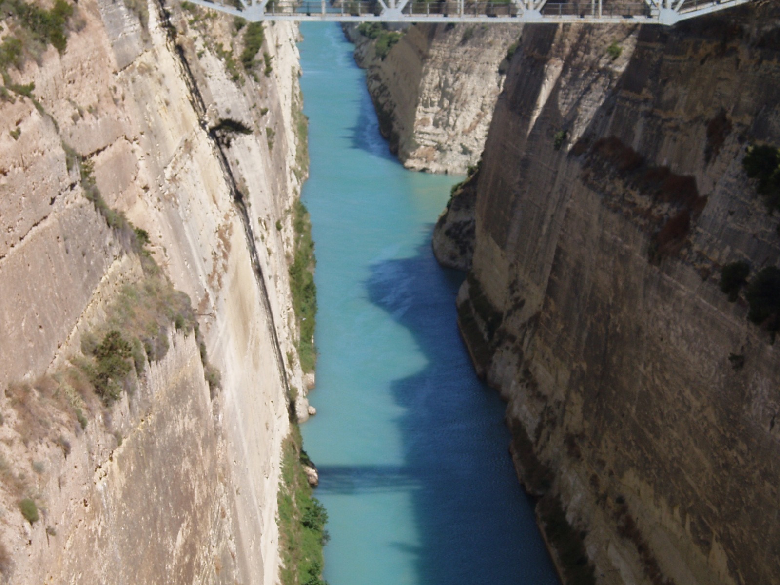 The canal was flooded in the 1800s. The ancients had originally planned that, but were afraid that the sea levels were slightly different on either side and the canal would cause flooding, so they created it dry.
